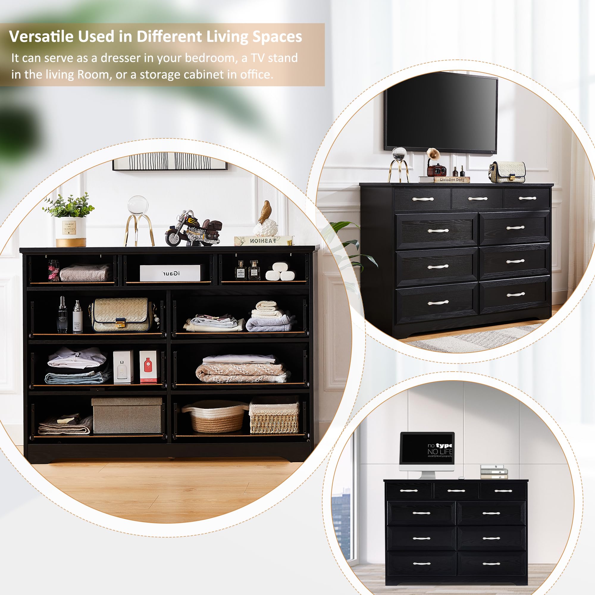 Amazon Com Tmsan 9 Drawer Wood Dresser For Bedroom Black Chest Of Drawers Modern Long Wide Dresser Chest With Antique Handles For Living Room Entryway Hallway Nursery Dorm Black Home Kitchen